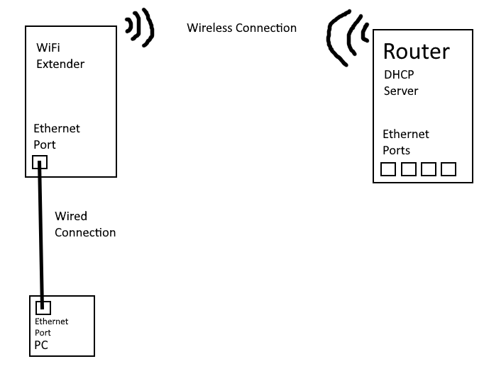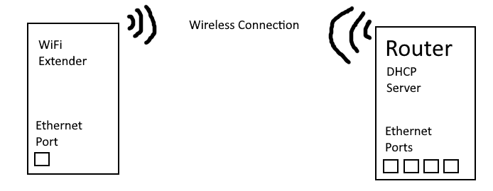 The router/modem is pretty far away from where I’m doing my development. It’s impractical to have an ethernet cable spanning the house. So I bought a wifi extender with an ethernet port to bridge the connection. Basically this